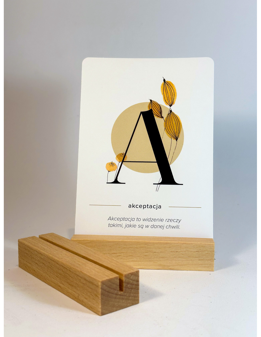 Podstawka bukowa, olejowana olejem bezbarwnym. Wymiary: 10 x 2.8 x 2 cm z wycięciem o szerokości 3 mm. Pasuje do wszystkich naszych kart.