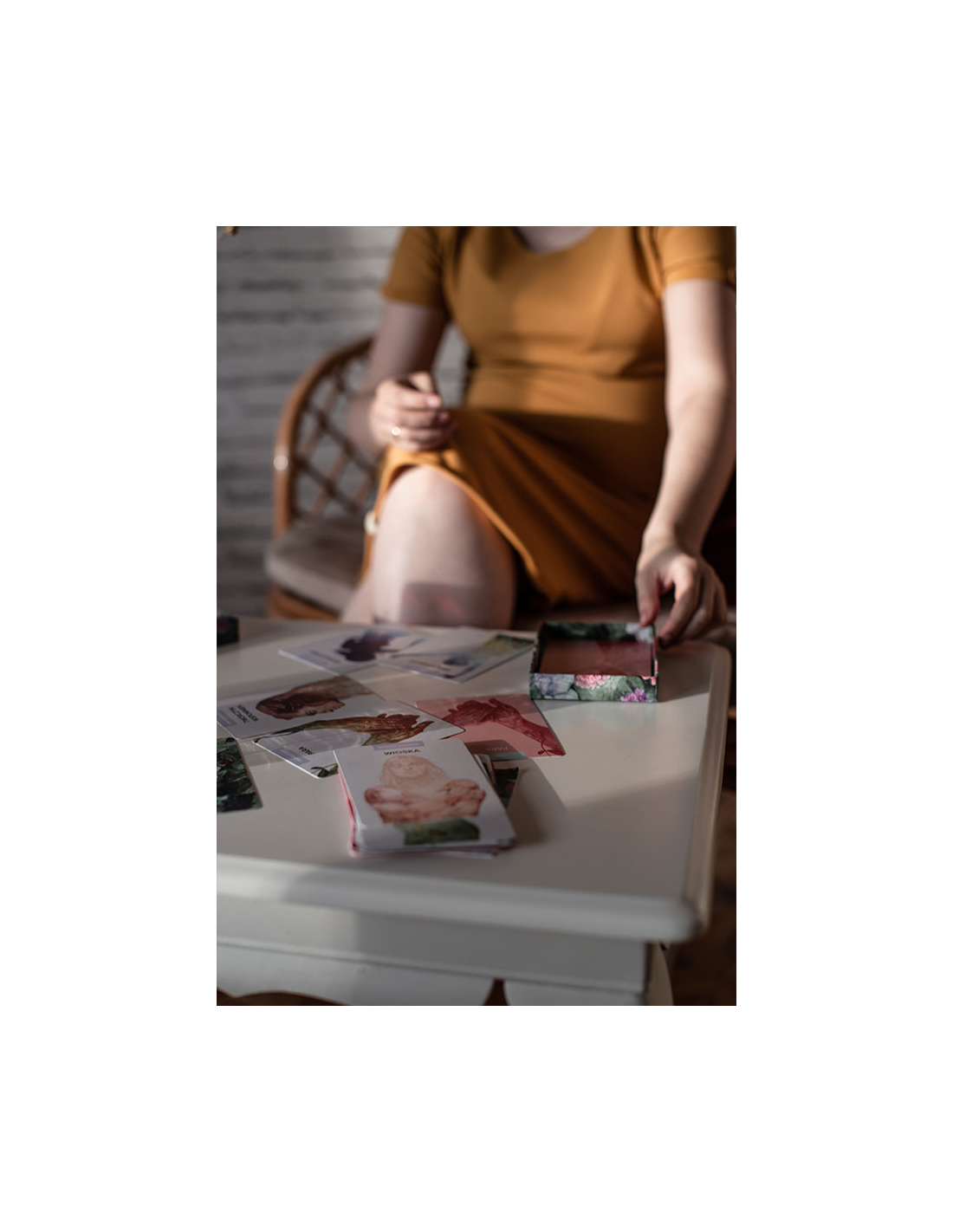 to zestaw kart, które przez pytania i wspierające treści pomogą Ci rozwijać samoświadomość w czasie ciąży, porodu i macierzyństwa. To unikatowe wsparcie doświadczonej douli (pierwszej w Polsce!), które będzie dla Ciebie wsparciem w tym wyjątkowym okresie Twojego życia i pomoże Ci zadbać o siebie.